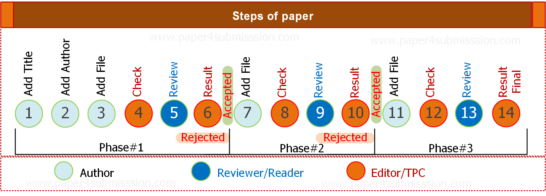 ***(กรณีบทความ จากระยะที่1 หรือ ระยะที่2 มีผลการพิจารณา : ผ่านการพิจารณา )ส่งไฟล์บทความฉบับแก้ไขสมบูรณ์ (Full paper) จะต้องมีชื่อ ผู้แต่งบทความ ชื่อหน่วยงาน ประวัติผู้แต่ง step[11] : อัพโหลดไฟล์step[12] : ตรวจสอบไฟล์จาก Editor/TPCstep[13] : ผู้ทรงคุณวุฒิประเมินบทความstep[14] : แจ้งผลการพิจารณาบทความ (ผล : ผ่านการพิจารณา --> ไป download หนังสือตอบรับ/ชำระเงิน)(ผล : ไม่ผ่านการพิจารณา --> สิ้นสุด) จะต้องส่งไฟล์ จำนวน 4 ไฟล์1). ไฟล์ ฉบับแก้ไขสมบูรณ์ ( *.pdf)2). ไฟล์ ฉบับแก้ไขสมบูรณ์ ( *.doc/docx)3). ไฟล์ บทคัดย่อ ( *.pdf)4). ไฟล์ บทคัดย่อ ( *.doc/docx)-------------------------------